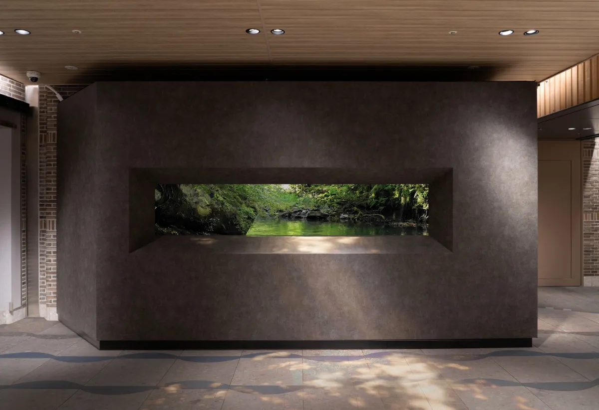 今回の空間演出には、映像制作・提供を担当する株式会社ランドスキップの手によって、視覚と聴覚のクロスモーダル効果が引き出されます。具体的には、自然の映像や木漏れ日、川のせせらぎなどが再現され、都市生活者が持つストレスを緩和することが狙いです。