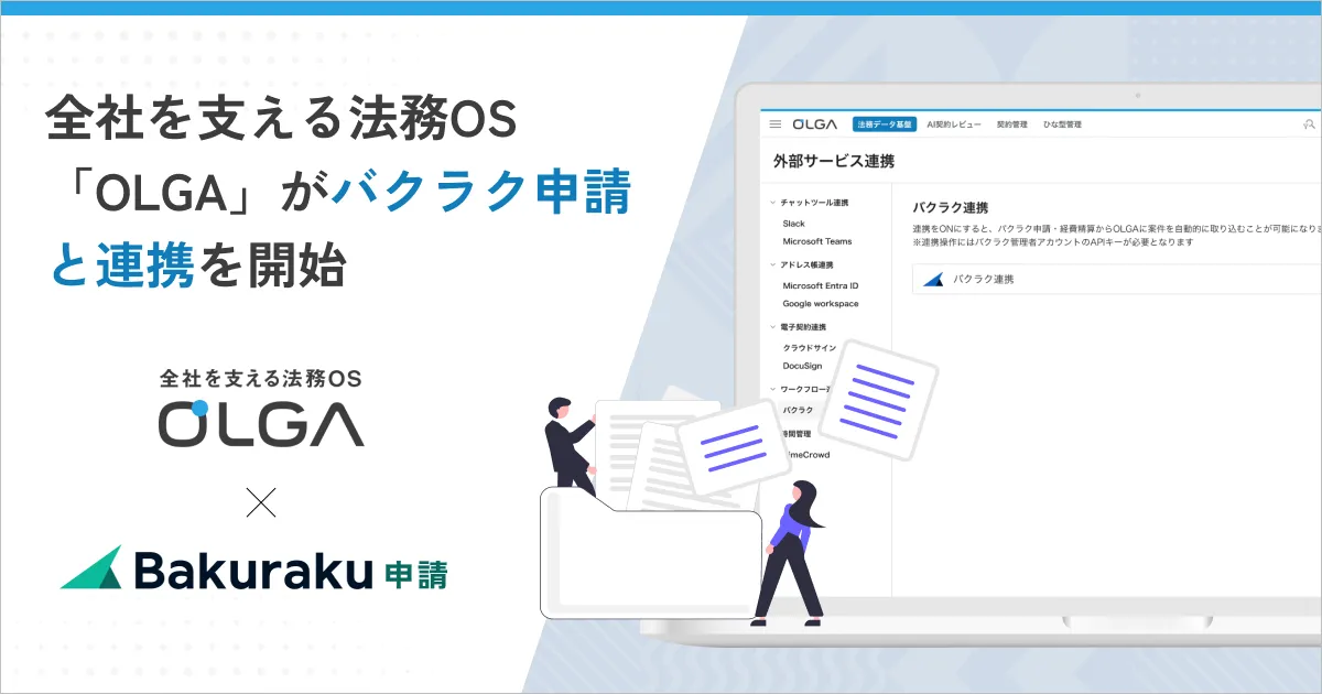 GVA TECH株式会社(東京都渋谷区)は、全社を支える法務OS「OLGA」と株式会社LayerXのクラウド型ワークフローシステム「バクラク申請」の連携を開始したことを発表しました。これにより、多くの企業が抱える法務業務の煩雑さを解消し、業務の効率化と申請処理の合理化が期待されています。