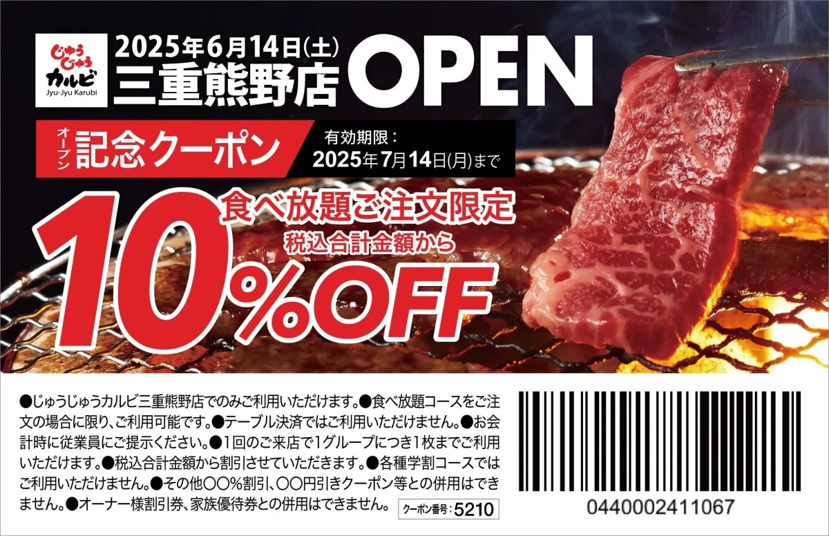 オープンを祝して、2025年7月14日(月)までの期間限定で、WEBクーポンの配布も行われます。ぜひこの機会を逃さず、特別なプライスで美味しい焼肉を堪能しましょう!