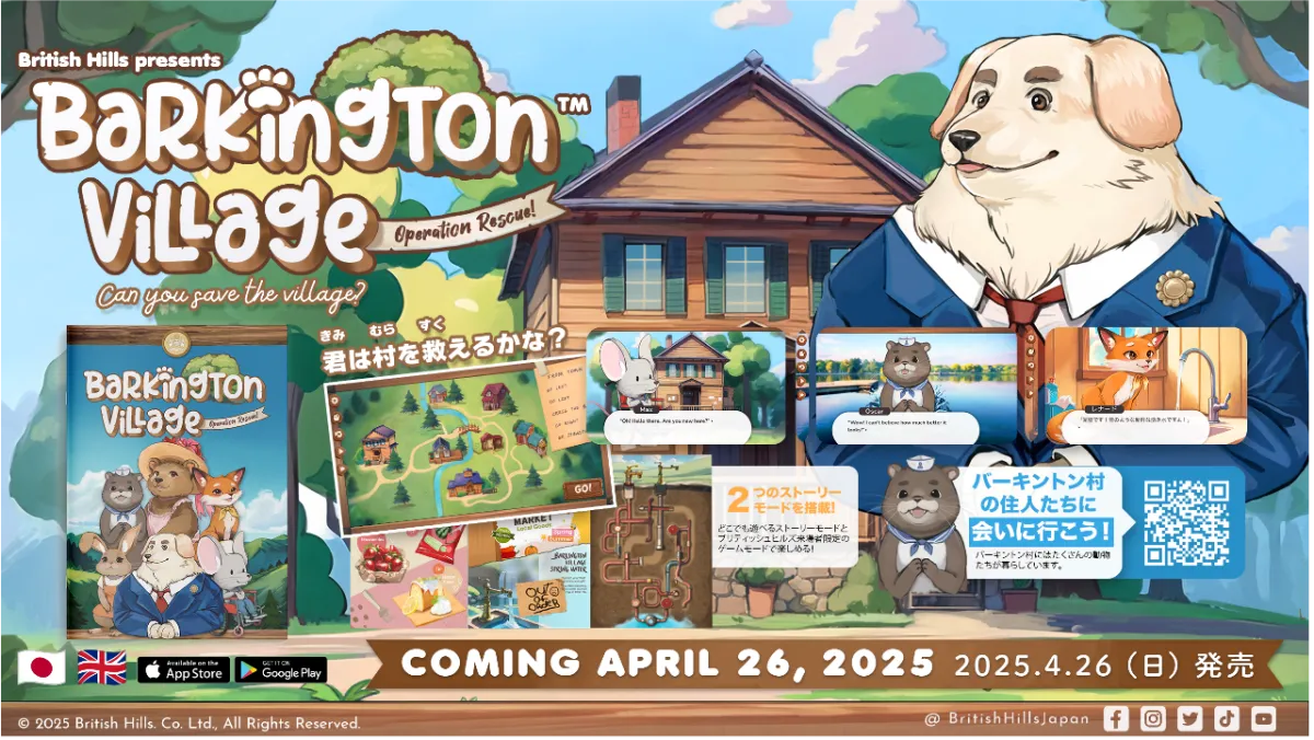 オリジナル英語アクティビティの「Barkington Village(バーキントンビレッジ)」に、モバイルゲームと連携した新たな体験が加わります。参加者は公式アプリをダウンロードし、施設内を探検してパズルゲームに挑戦することで物語を進めていきます。