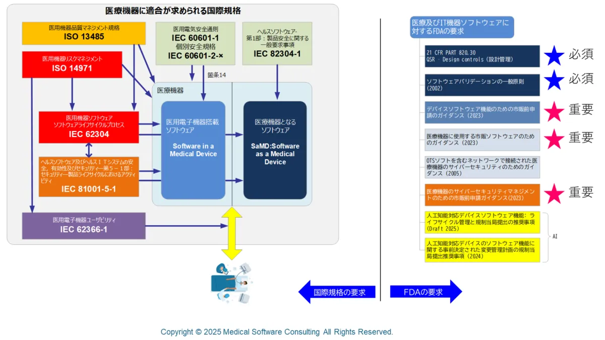 医療機器ソフトウェアは、デバイス全体の機能を支える核心的な要素です。これは、診断や治療における精度や安全性を確保するために欠かせないものとなっています。そのため、規制は非常に重要で、国際規格やFDAガイダンスに従った開発が求められています。