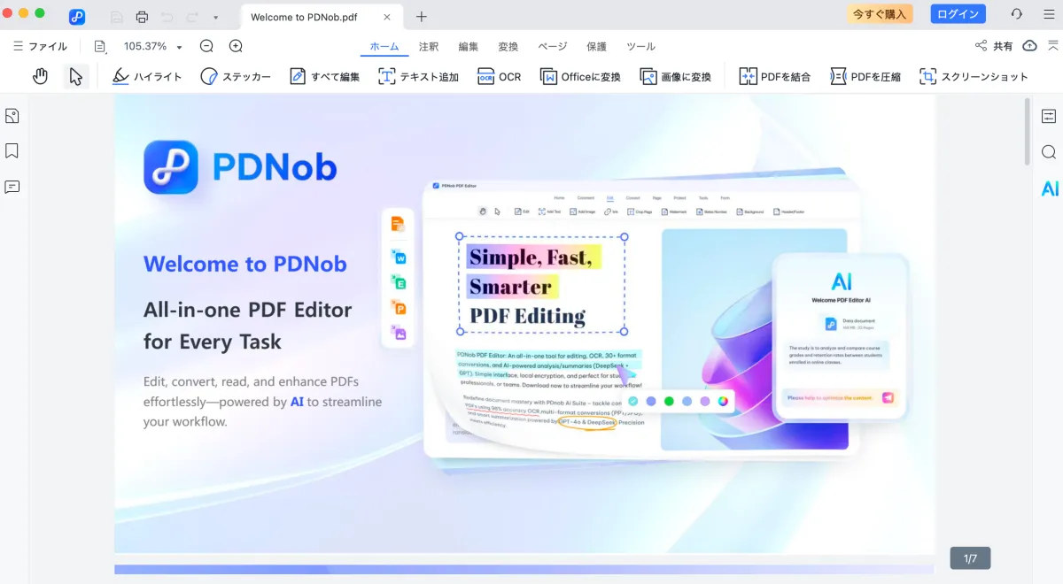 「Tenorshare PDNob」はPDFの編集、変換、管理を一括で行えるオールインワンソフトです。主な機能は以下の通りです: