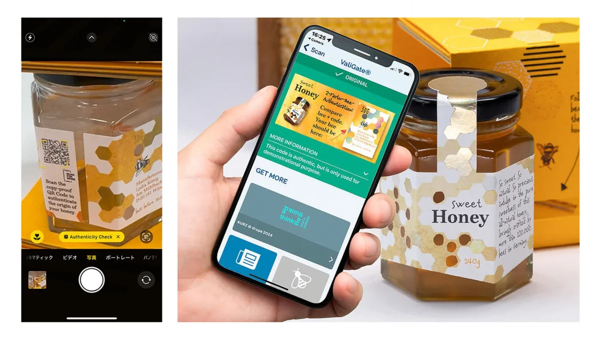 クルツジャパンが開発したValiGate®は、独自の特殊印刷パターンを利用して製品にQRコードを印字します。このQRコードは、複製不可能な暗号化が施されており、不正コピーを瞬時に識別することが可能です。これにより、偽造品や横流し商品の発見が容易になり、企業のマーケティングツールとしても機能します。スマートフォンアプリなしで利用でき、誰でも簡単に商品の真正性を確認できます。