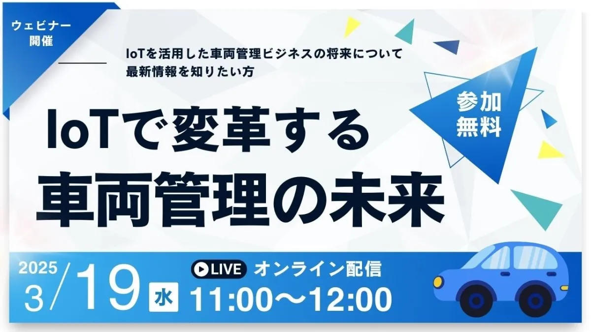 このウェビナーを通じて、参加者がIoTによる車両管理の新たな可能性を見出し、実践に活かせるきっかけになることを期待しています。