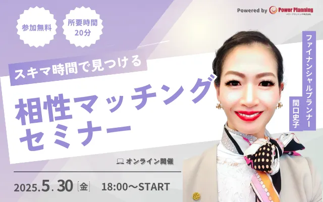 5月30日(金)18時、無料マネーセミナーサービス「アットセミナー」が、オンラインでの「相性マッチングセミナー」を開催します。このセミナーでは、参加者が自身に最も合ったファイナンシャルプランナー(FP)に出会うことができる特別な機会を提供します。講師を務めるのは、経験豊富な間口史子FPです。