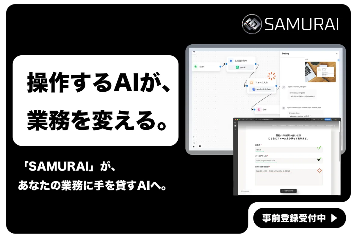 株式会社Kivaが新たに発表した次世代GUI操作型AIエージェント「SAMURAI」が、ビジネスに革命をもたらそうとしています。2025年6月19日から事前登録がスタートされたこのAIは、専門的な知識がなくても業務を効率化できる機能を搭載しています。
