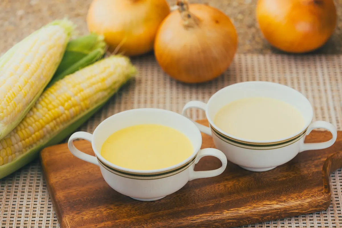 提供されるスープは、トウモロコシと玉ねぎの2種類です。トウモロコシを使用した冷製スープでは、その自然な甘みを引き出すために、あえて粒を残さず滑らかな舌触りに仕上げられています。また、おいしいオニオンスープも用意されており、玉ねぎの甘みとバターの香ばしさが融合した、心温まる味わいを楽しむことができます。
