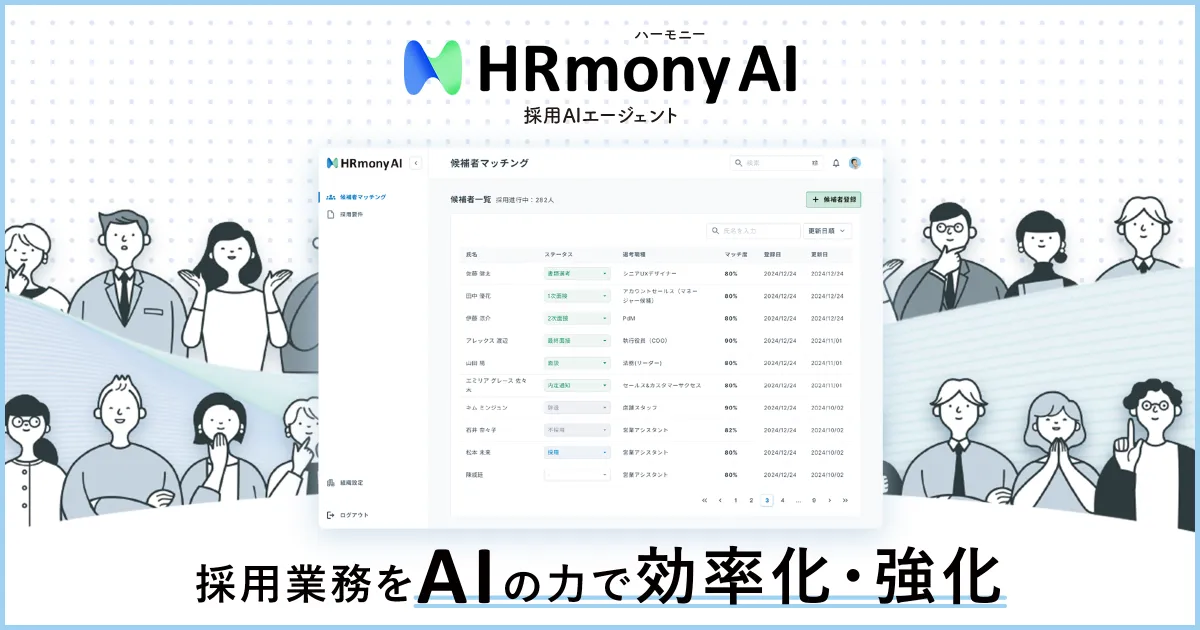 コロナウイルスの影響や少子高齢化といった社会の変化によって、採用市場は厳しい状況にあります。候補者の希少性が高まる中で、企業はそのニーズにしっかり応えることが求められています。これに応えるべく、株式会社グッドパッチが新たにリリースしたのが「HRmony AI」です。このAIエージェントを導入することで、採用業務の効率化と標準化を実現し、企業の人事部門に新たな価値を提供します。