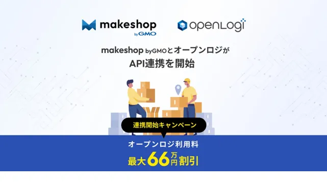 この連携を記念して、「makeshop byGMO連携開始キャンペーン」が行われます。新規にECサイトを構築し、オープンロジを初めて利用する事業者には、最大15万円から66万円の利用料金がディスカウントされる特典があります。