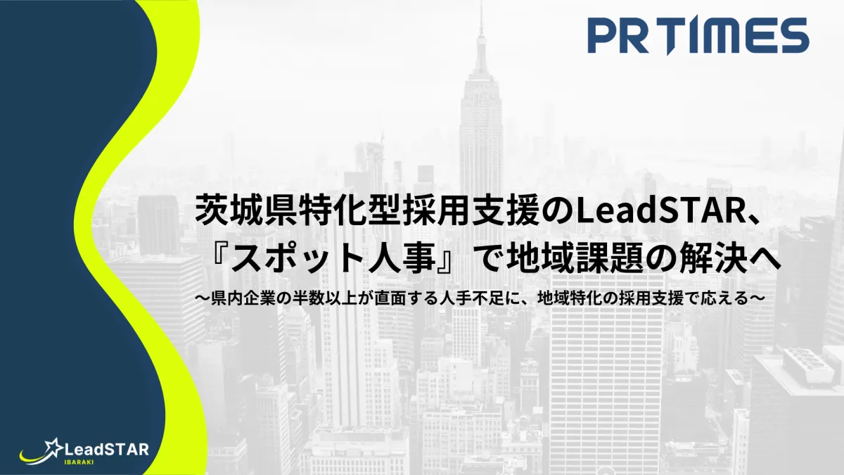 茨城県に本社を置く株式会社LeadSTARは、地域企業の採用課題に特化したサービス「スポット人事」を展開しています。「地方での採用活動はもっと簡単に」という理念のもと、茨城県内の企業が抱える人材不足を解決し、成長を促すことを目指しています。