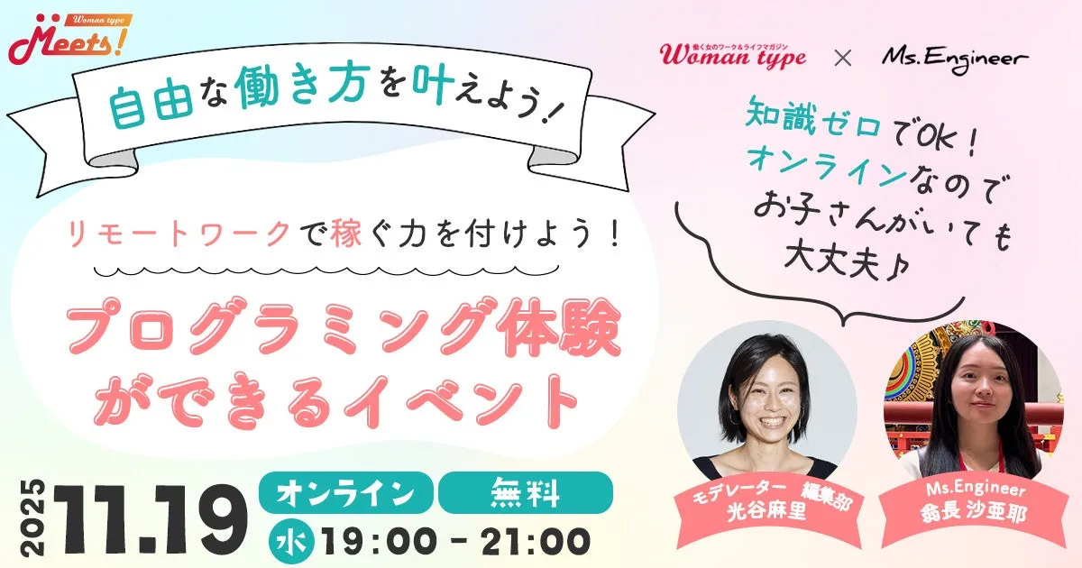 株式会社キャリアデザインセンターが運営するWebマガジン『Woman type』は、エンジニアを志望する未経験の女性を応援するために、特別なイベントを今年の11月19日に実施します。このイベントでは、実際にエンジニアとして働く女性たちの体験談を聞きながら、エンジニアとしてのキャリアを具体的に考える機会が提供されます。