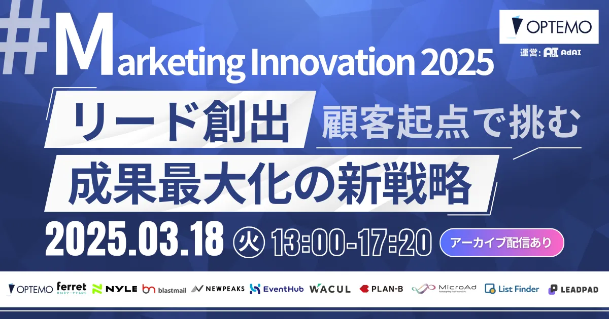 2025年3月18日(火)、株式会社Innovation X Solutionsが主催するオンラインカンファレンス「#Marketing Innovation 2025」が開催されます。テーマは「顧客起点で挑む リード創出成果最大化の新戦略」。現代のビジネス環境では、顧客が自ら情報を求め、意思決定を行う時代になりました。そのため、顧客の視点から考えたマーケティング戦略が不可欠です。しかし、多くの企業はデータ活用の不足や、マーケティングと営業の連携が十分でなく、期待される成果を上げられていないのが現状です。
