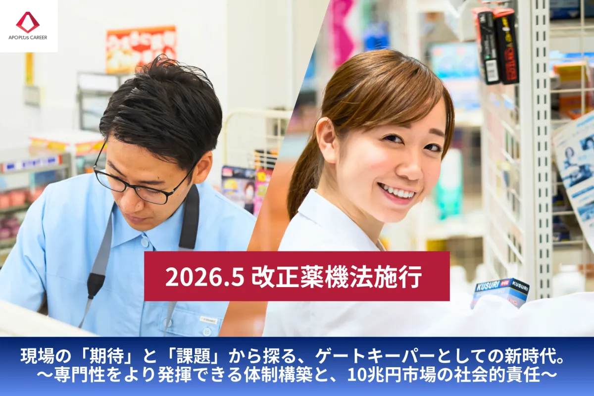 アポプラスキャリア株式会社としては、登録販売者が地域の健康を守る「ゲートキーパー」としての能力を最大限に発揮できる環境整備を支援し、業界全体の持続的成長を目指しています。2026年の法改正を機に、「専門性を活かした対人サービス」へと進化するドラッグストア業界に寄与できることを心より望んでいます。これからの時代、登録販売者が誇り高く仕事に取り組み、地域社会に貢献できる仕組みづくりが急務です。