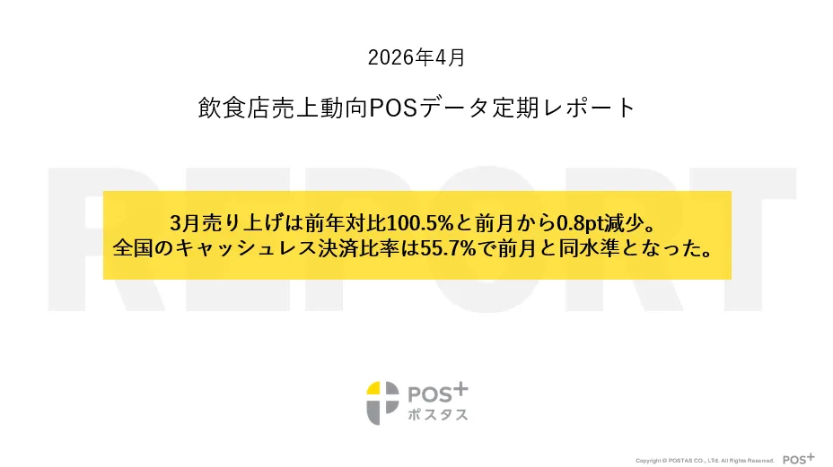 2026年3月の飲食店売上動向は、前年対比で100.5%と好調な数字を記録しました。キャッシュレス決済の普及も顕著で、さまざまな業態で進展が見られました。ポスタス株式会社は、今後もこの動向を追い続け、業界への支援を続けていく方針です。