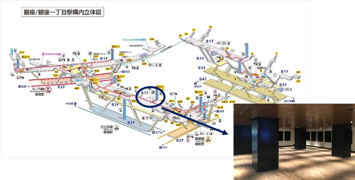 - - 場所: 日比谷線銀座駅B2出入口付近