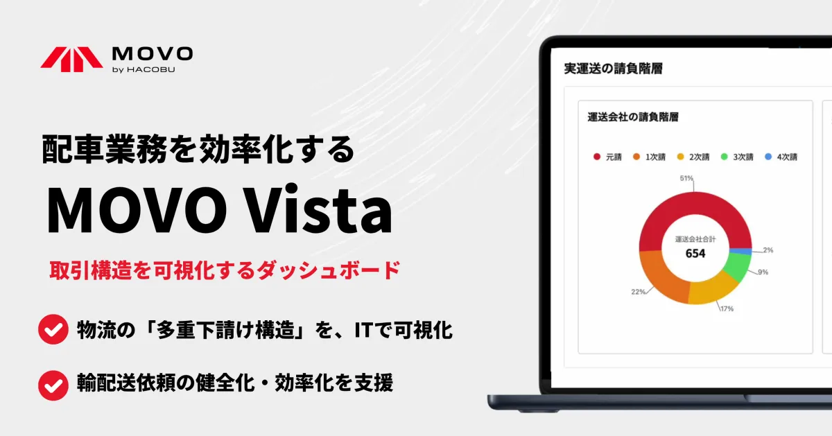 株式会社Hacobuは、配車受発注・管理サービス「MOVO Vista」に新たに取引構造を可視化するダッシュボード機能を2025年8月5日より実装することを発表しました。これは特に物流業界での長年の課題である多重下請け構造の改善を目指したものです。