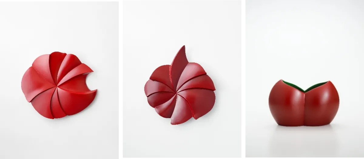 「漆逍遙」展では、漆による多彩な作品が展示され、雲や太陽をイメージしたもの、また果実や草花を意識した丸みのあるオブジェなど、様々な形状が楽しめます。来場者は、ポルトローナ・フラウの洗練されたインテリアとともに、漆芸の独自の世界に触れることができるでしょう。