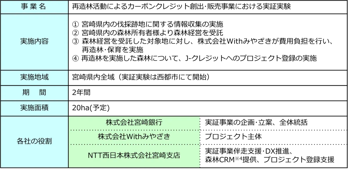 2023年4月27日、NTT西日本株式会社宮崎支店は、株式会社宮崎銀行、株式会社Withみやざきとの包括連携協定に基づき、宮崎県内で再造林活動を通じたカーボンクレジットの創出と販売事業に関する実証実験を開始することを発表しました。この取り組みは、地域における森林資源の有効活用を目的としており、全国的にも先進的な試みと位置付けられています。