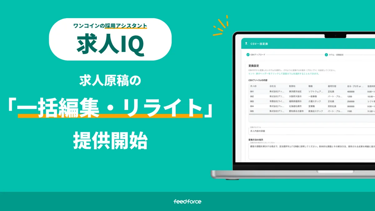 新機能「求人IQ」のリリースは、求人業務を行う企業にとって大きな福音と言えます。求人原稿を一括で編集・リライトできるこの機能を是非活用して、業務の効率化を図ってみてはいかがでしょうか。詳細や申し込みについては