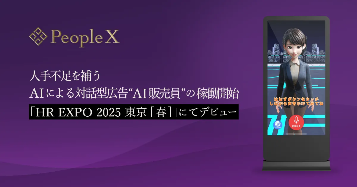 株式会社PeopleXは、AI技術を駆使した新しい対話型広告サービス「AI販売員」を発表しました。本サービスは、2025年6月25日から27日に東京ビッグサイトで開催されるHR EXPOで初披露され、来場者はリアルタイムで対話を通じて企業情報を得ることができます。