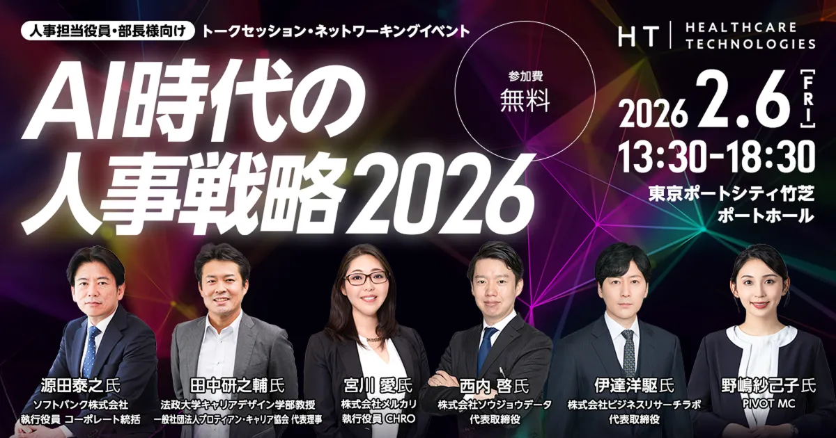 2026年2月6日、東京ポートシティ竹芝ポートホールで「AI時代の人事戦略2026」というカンファレンスが開催されます。これは、ヘルスケア事業を展開するヘルスケアテクノロジーズ株式会社が主催し、人事担当者や経営層向けにAI活用の最新情報と実践事例を紹介するイベントです。AIの進化が進む中、特に企業における人事戦略がどのように変わりつつあるのかを各分野の専門家とともに探ります。