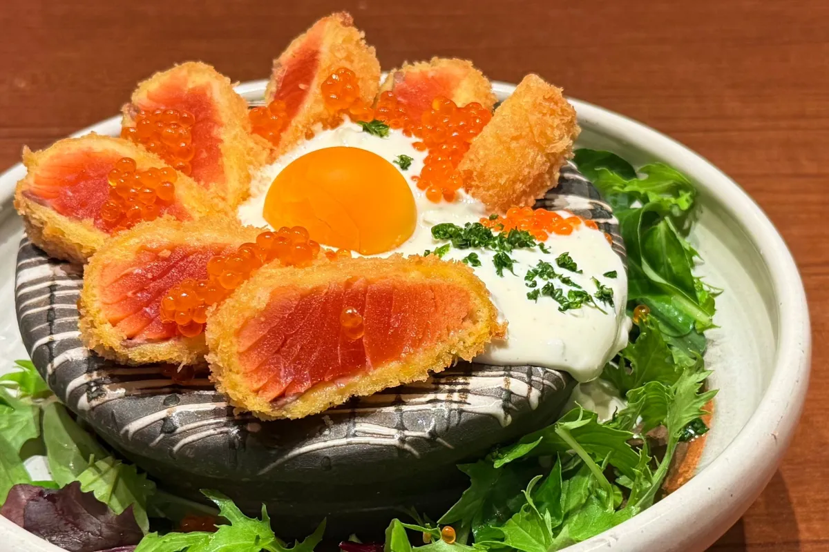 今回提供されるレアカツは、サクラマスの優れた舌ざわりを最大限に引き出すために、あえて生に近い状態でカツに仕上げるという斬新なアプローチがされております。外はサクサクで、中はしっとりとしたなめらかな食感が楽しめます。さらに、上から北海道産のいくらをふんだんにトッピング。まろやかなサクラマスの味わいと、弾けるいくらの食感が絶妙に絡み合うことで、口の中で広がる旨みの洪水に。