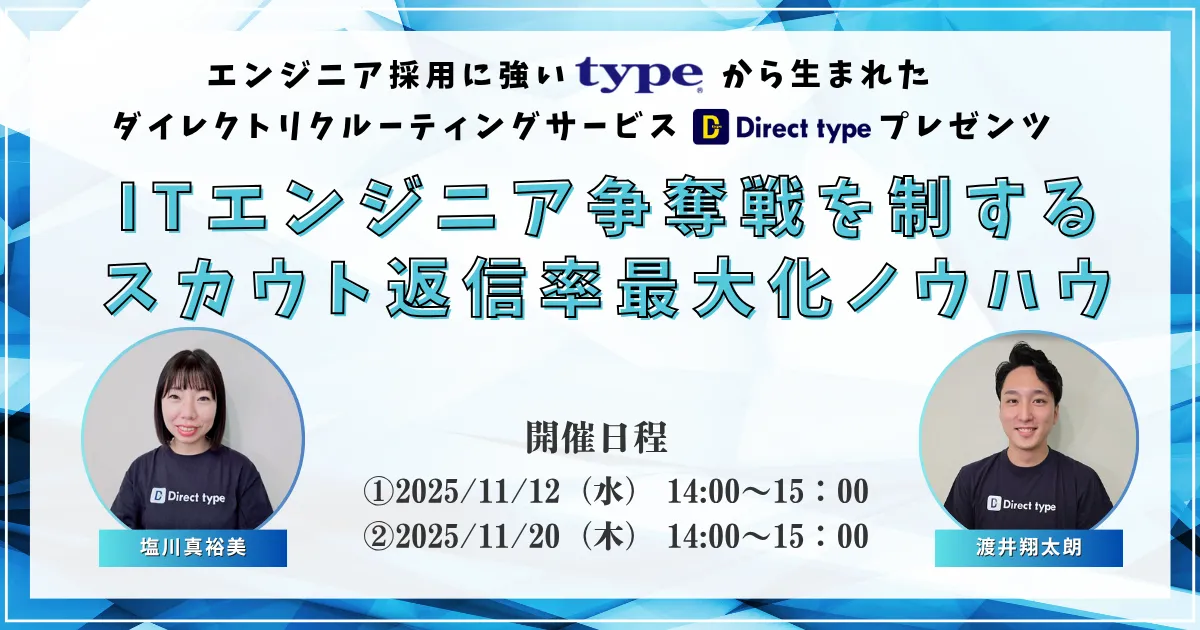 IT業界においてエンジニアの採用はますます困難になっています。その理由として、高い需要と少ない供給が挙げられます。企業は優れたエンジニアを採用するために、あらゆる手段を講じなければなりません。その中で、大きな役割を果たすのがダイレクトリクルーティングです。ここでは、ダイレクトリクルーティングサービス「Direct type」が主催するセミナーについてご紹介します。
