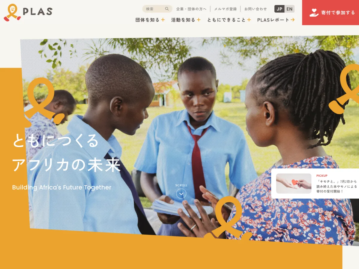 こちらからご覧いただけます。PLASのビジョンや活動内容、寄付の方法などが詳細に紹介されており、訪問者は容易にPLASの取り組みについて理解を深めることができます。