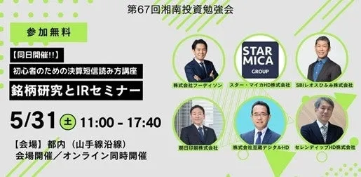 セレンディップ・ホールディングス株式会社は、2025年5月31日(土)に、東京都内およびオンラインで開催される「湘南投資勉強会」に参加することを発表しました。この勉強会は、個人投資家を対象にしたIR説明会として位置づけられ、多くの投資家にとって価値のある情報が提供される貴重な機会です。