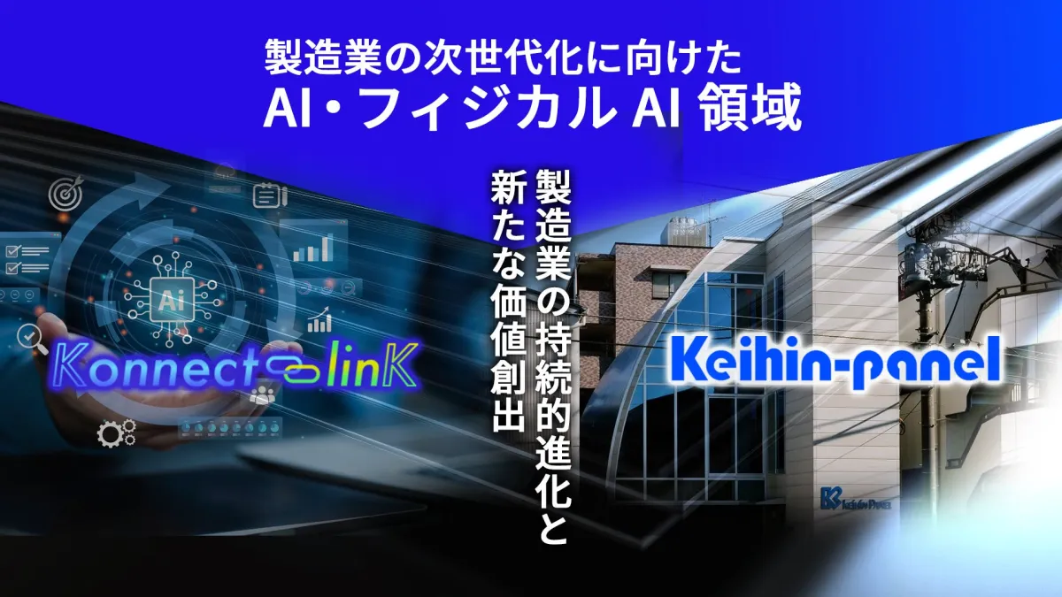 京浜パネル工業株式会社(以下「京浜パネル」)と株式会社Konnect-linK(以下「Konnect-linK」)は、製造業の次世代化に向けた新たな一歩を踏み出しました。両社の包括的な連携は、AIとフィジカルAI領域の活用を通じて、製造業に新たな価値を創出し、持続的な進化を目指しています。