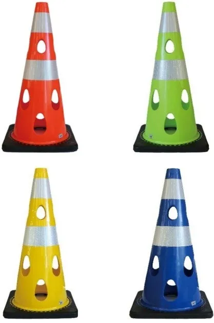 耐久性に優れたこのコーンは、道路工事や地域のイベント、緊急時の注意喚起にも適しています。例えば、イベント会場での案内表示や、災害現場での交通整理など、用途は多岐にわたります。また、環境にも配慮した設計となっており、穴あけによってプラスチック使用量を削減することで、SDGsにも貢献しているのです。
