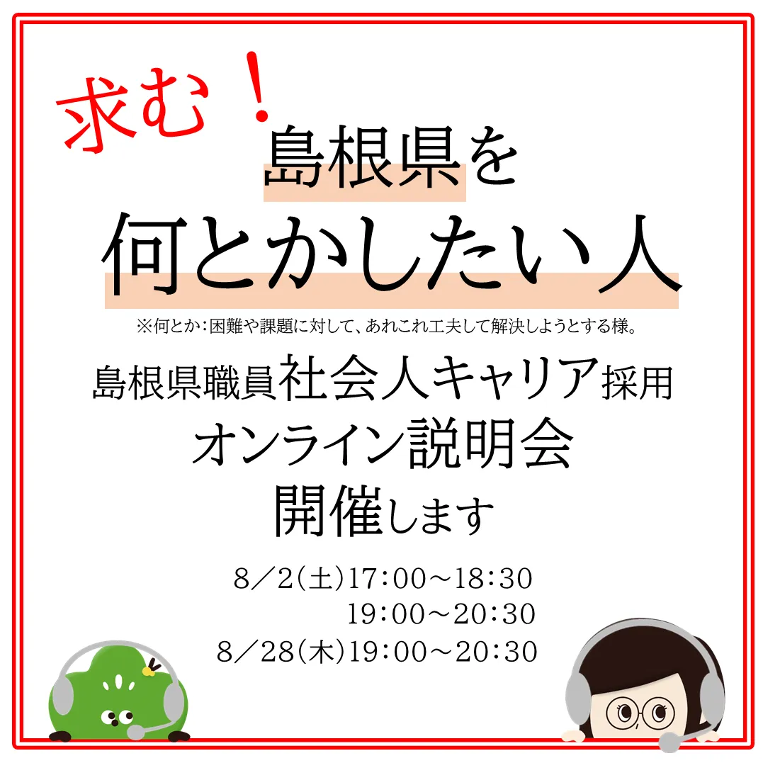 島根県の職員として新たな一歩を踏み出すチャンスをこの説明会で手に入れてください!