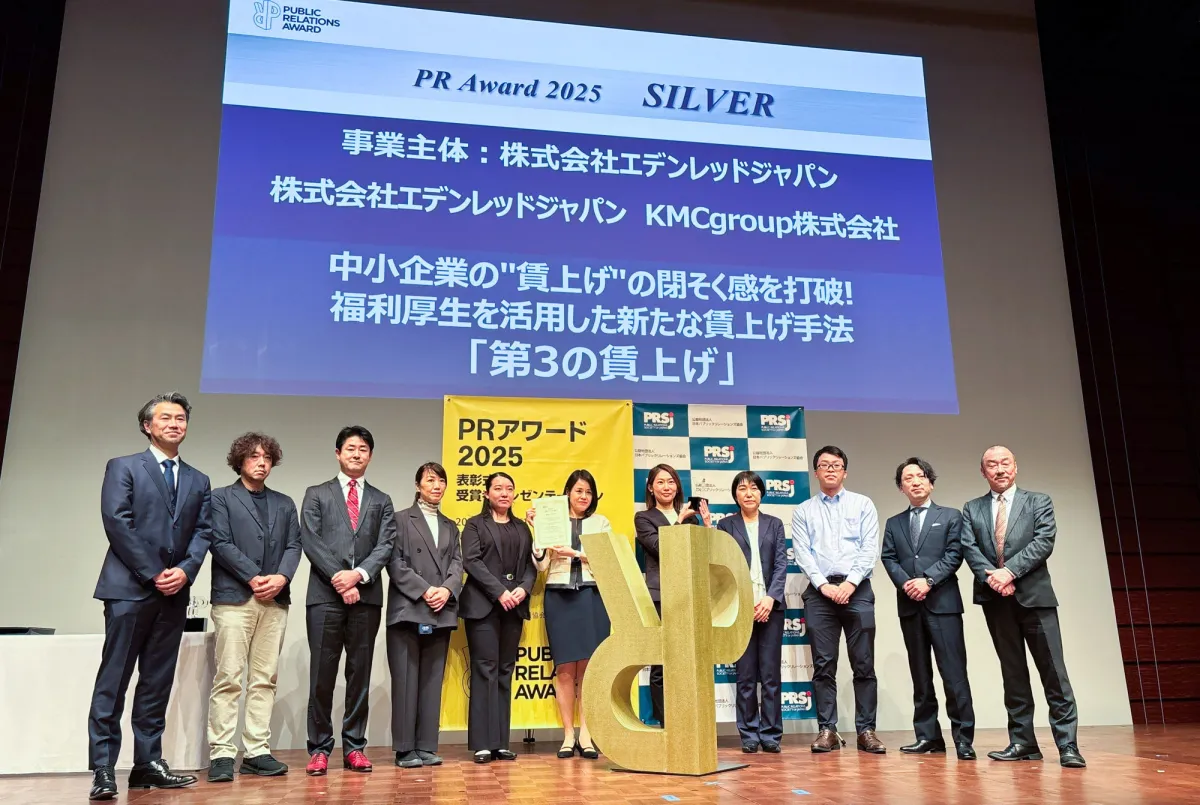 株式会社エデンレッドジャパンが、2024年にスタートしたプロジェクト「#第3の賃上げアクション」が、公益社団法人日本PR協会主催の「PRアワード2025」でシルバー賞を受賞した。これは、従業員の実質手取りを増やす新しい賃上げの概念が社会的に評価されたことを意味する。