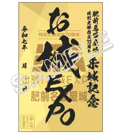 当日は、「出張!お城 EXPO in 肥前名護屋城」オリジナル御城印も販売予定です。この御城印は、豊臣秀吉の「黄金の茶室」に因んでデザインされており、キラキラと輝く特別な仕様となっています。名護屋城の特別史跡指定70周年及びお城EXPO開催を祝う一品として、コレクションやお土産としても人気です。価格は700円(税込)で、名護屋城博物館のミュージアムショップにて購入できます。