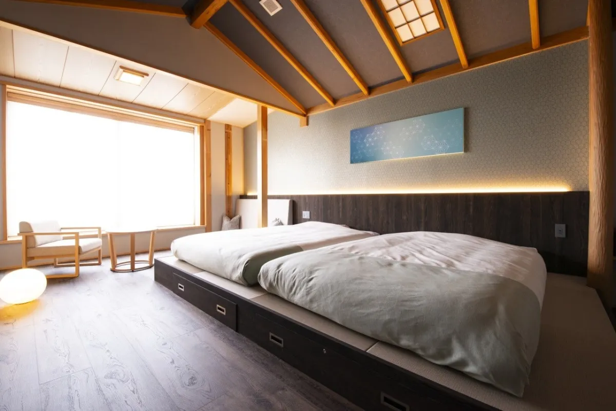 岩手県一関市、厳美町。ここに新たにオープンする「祭畤温泉かみくら」は、2025年4月25日(金)にグランドオープンを迎えます。この新しい温泉施設の名は、爽やかな初夏の空にちなんで名付けられました。施設内のスタンダードルーム「浅葱」に入ると、麻の葉模様が印象的な空間が広がります。麻の葉模様は、健やかな成長や繁栄の象徴とされ、この部屋では心が和らぐような静かなひとときを楽しむことができます。