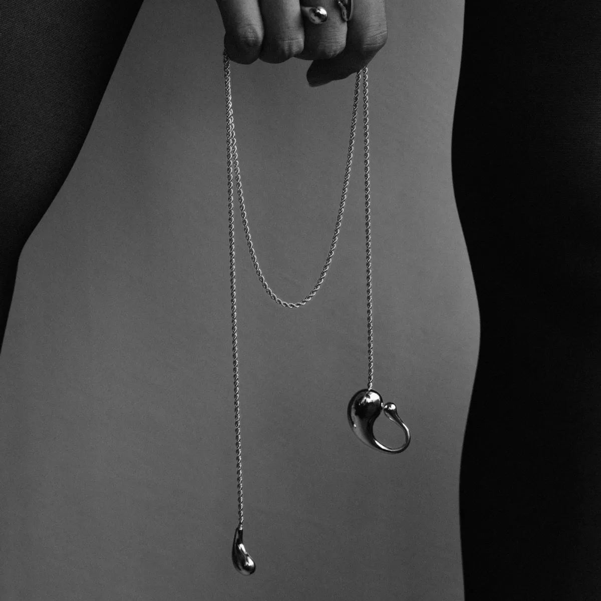 このブランドのジュエリーは、ただのアクセサリーとしての枠を超えて、装飾性をもちながらも“生っぽさ”を感じさせる独特な造形が特徴です。艶やかで滑らかな曲線を活かし、彫刻のような存在感を放つこれらのアイテムは、身につける人の身体や心に寄り添うようにデザインされています。特に、彫刻的なフォルムや有機的な曲線は、自然にその人の一部として溶け込むことを目指しています。