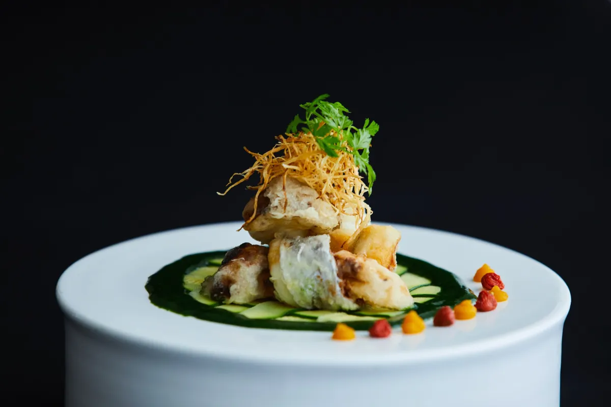 地元の旬野菜を中心に、伊勢海老や鮑、フォアグラなどの高級食材を使用した美しい一皿を提供します。特に、伊勢海老は「お造り」と「美味煮」から選ぶことができ、客一人ひとりの好みに応じたサービスが魅力です。
