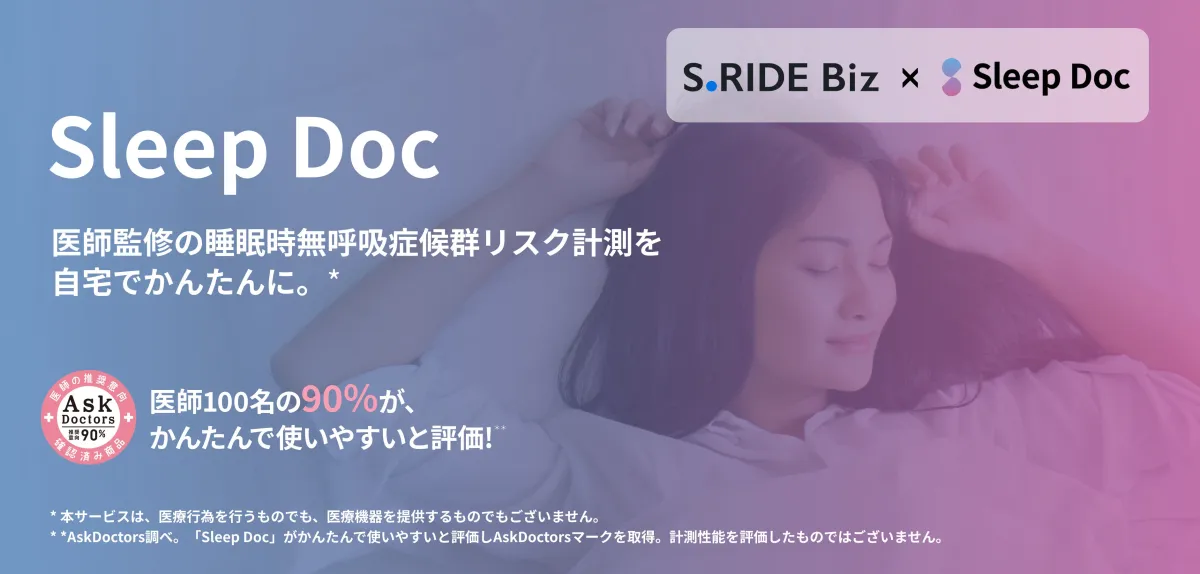 S.RIDE株式会社は、法人向けタクシーアプリ「S.RIDE Biz」を利用する企業に、睡眠時無呼吸症候群(SAS)のリスク計測を行うサービス「Sleep Doc」を提供するキャンペーンを発表しました。このキャンペーンにより、企業の従業員やその家族は、特別価格で睡眠リスクを調査できる機会を得られます。