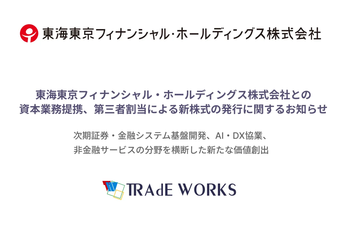株式会社トレードワークス(以下、当社)は、2026年2月12日に取締役会を開き、東海東京フィナンシャル・ホールディングス株式会社(以下、東海東京FH)との資本業務提携を決定しました。この提携は、金融市場のデジタル化や次世代技術の活用を通じて、両社の成長を加速させる狙いがあります。