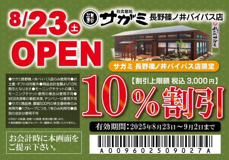 2025年8月23日(土)、長野市に新しい和食の拠点が誕生します。和食麺処サガミ長野篠ノ井バイパス店のオープンに合わせて、これまでの和食の概念を覆す魅力的なメニューが目白押しです。開店初日からの「OPEN祭り」では、初心者でも楽しめる特別な品々が用意されており、お得な価格で味わえるのが魅力です。