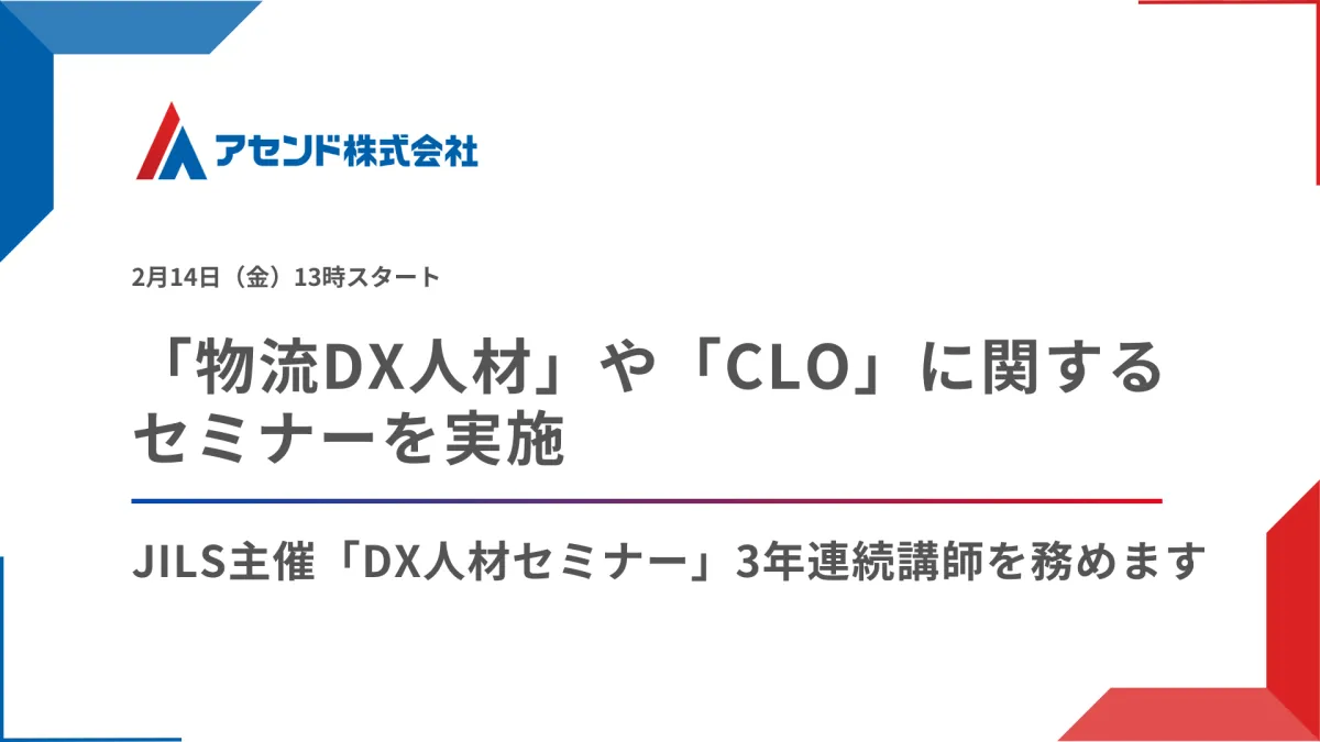 2025年2月14日(金)13時から、日本ロジスティクスシステム協会(JILS)の主催による『物流業界におけるDX人材の育成セミナー』が開催される。アセンド株式会社の代表取締役である日下瑞貴氏が講師を務め、物流DXの進め方や人材育成に関する課題について解説する予定だ。
