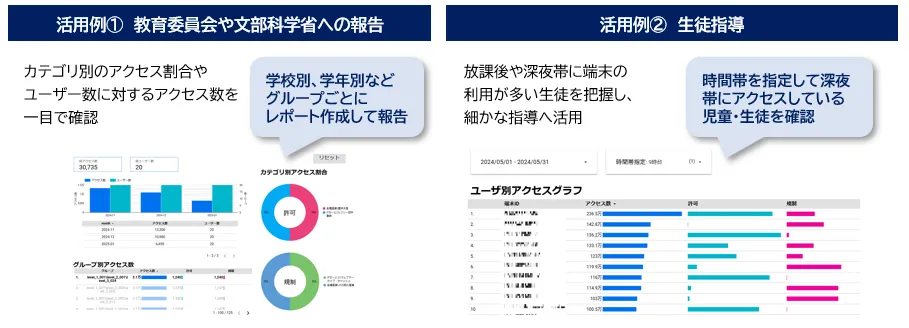 さらに、時間帯別の利用状況を分析することにより、深夜帯に端末を使用しているケースなどにも具体的に対応できるため、安全な学習環境の実現に寄与します。