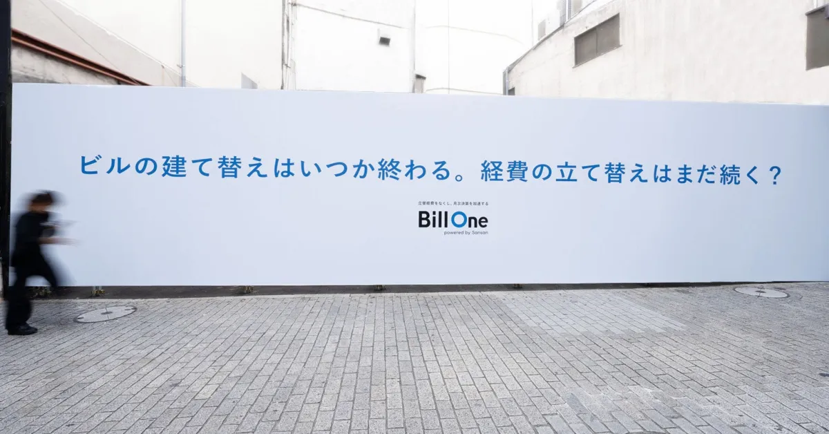 今回の屋外広告は、渋谷駅周辺、上野駅、新橋駅、新宿駅など、計12箇所に掲出されます。工事現場の仮囲いを中心に、「ビルの建て替えはいつか終わる。経費の立て替えはまだ続く?」というメッセージを掲げています。このメッセージでは、終わりがある建設現場「建て替え」と、終わりの見えない会社員の「立て替え」を対比し、経費に対する意識を喚起します。