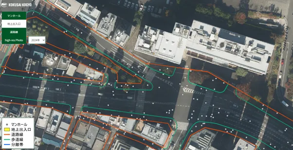 オルソ画像は、航空写真を真上から撮影したものを正射投影に変換した地図データです。国際航業が独自に整備したオルソ画像は、構造物の標高データを使用することで鮮明な背景画像を実現し、地図座標と写真座標の一致が期待できます。この高精度なデータは、都市測量やインフラ管理の高効率化に寄与することを目的としています。