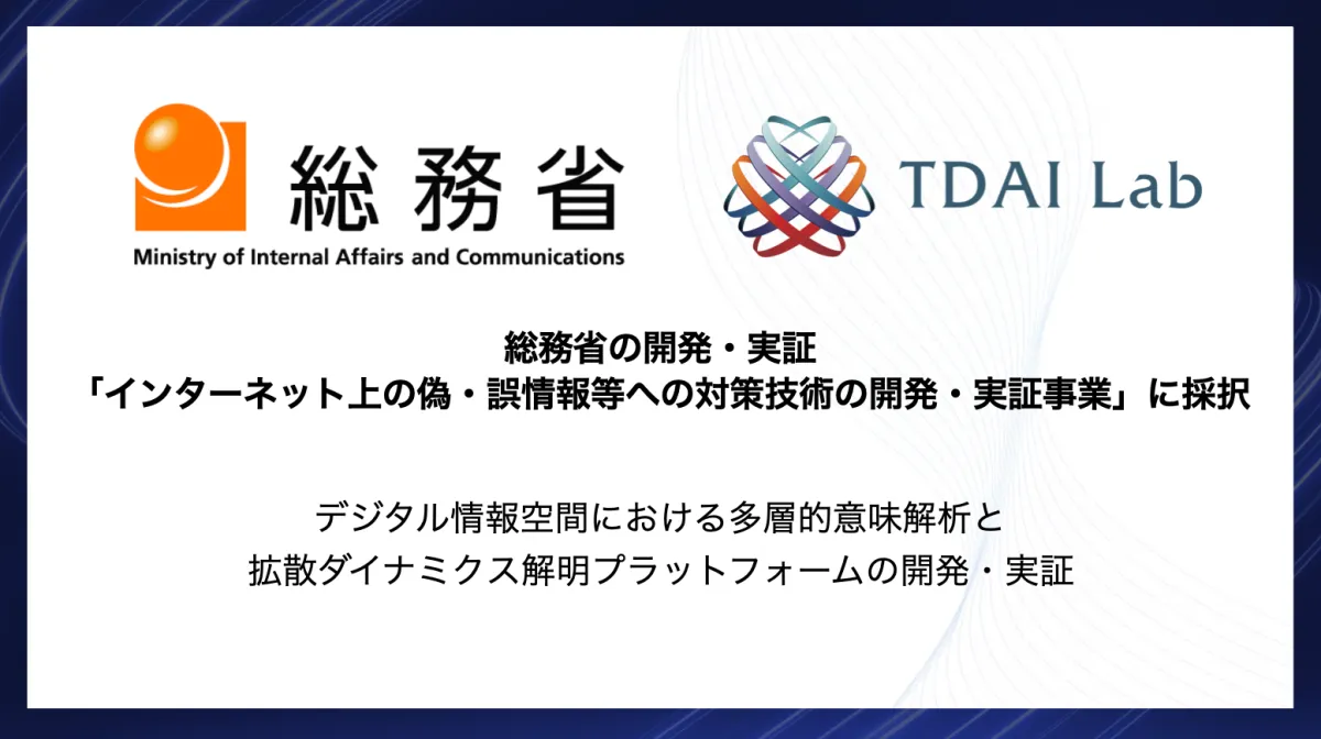 東京大学の鳥海研究室が生んだAIベンチャー、株式会社TDAI Labがこのたび、総務省による「インターネット上の偽・誤情報等への対策技術の開発・実証事業」に採択されました。この事業は、SNS上で広がる誤解を生む情報を可視化し、社会における情報操作を抑止することを目的としています。私たちが直面している情報過多の時代に、この技術がどのように活用されるかを探っていきましょう。