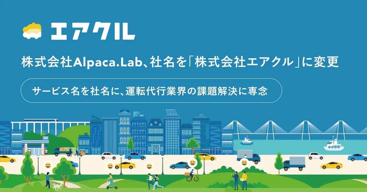 2026年4月2日、株式会社Alpaca.Labは新たに「株式会社エアクル」と名を改めることを発表しました。この変更は、運転代行配車プラットフォーム「AIRCLE(エアクル)」の名を取ったものであり、同社の更なる成長と運転代行業界の課題解決に寄与するための重要なステップです。