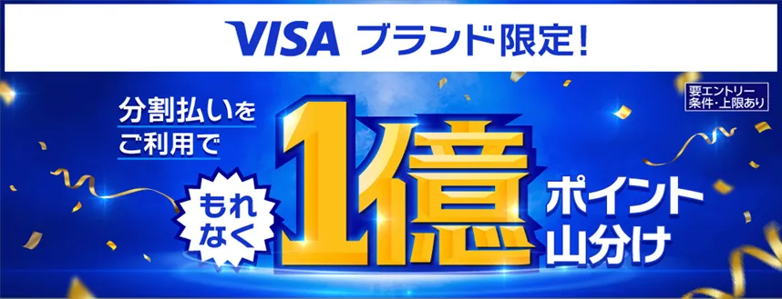 このキャンペーンの参加方法は簡単です。まずは期間中にキャンペーンにエントリーし、Visaブランドの楽天カードで分割払いを行うことが条件となります。利用金額の合計が30,000円以上なら、特典として1億ポイントを参加者全員で分け合えるのです。