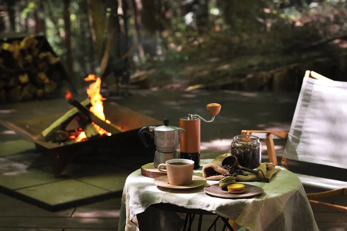 焚き火で淹れたコーヒーの風味は非常に力強く、コーヒーオイルの質感も楽しめます。さらに、エスプレッソとも飲み比べができ、ファインフードとのペアリングも楽しめるため、深いコーヒー体験が広がります。