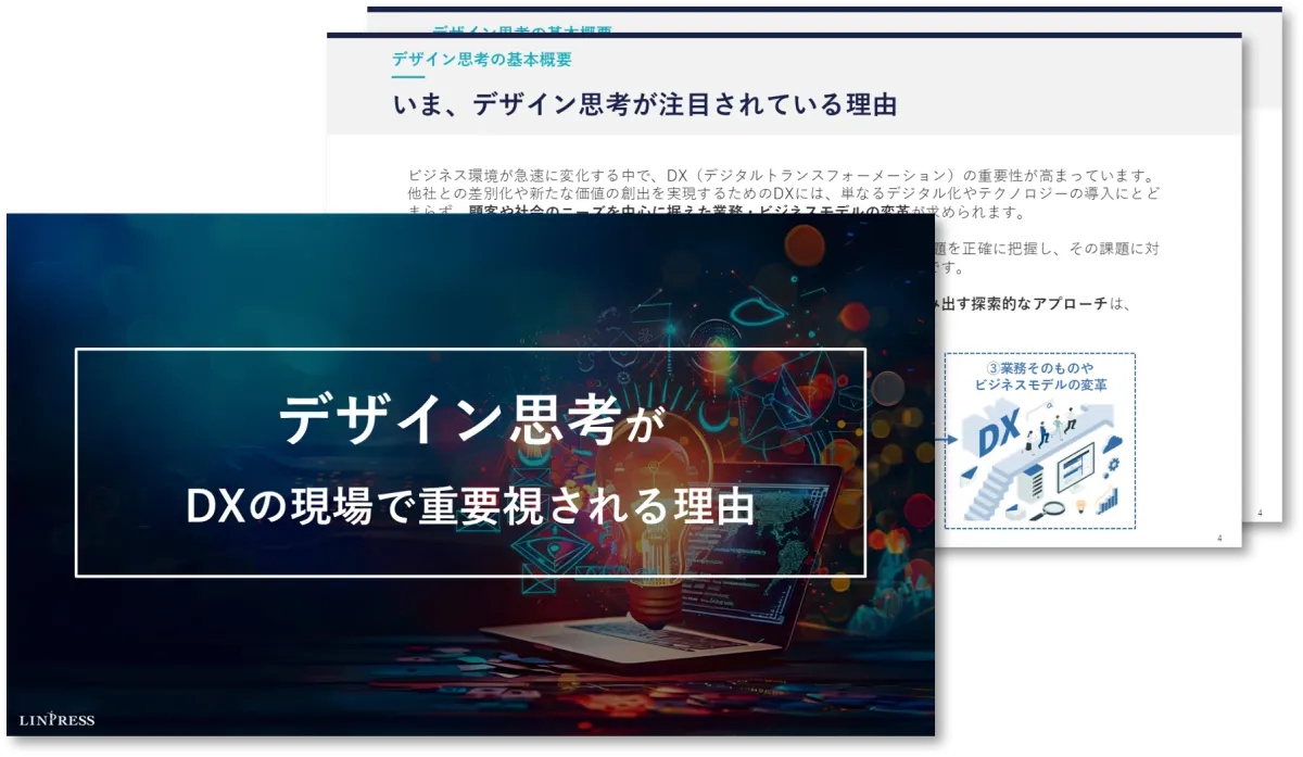 最近、多くの企業がデジタルトランスフォーメーション(DX)に取り組む中で、その成功のカギとして「デザイン思考」が注目されています。株式会社リンプレスは、DXの現場におけるデザイン思考の重要性を解説した資料を無料で公開しました。今回は、その内容について詳しくご紹介します。