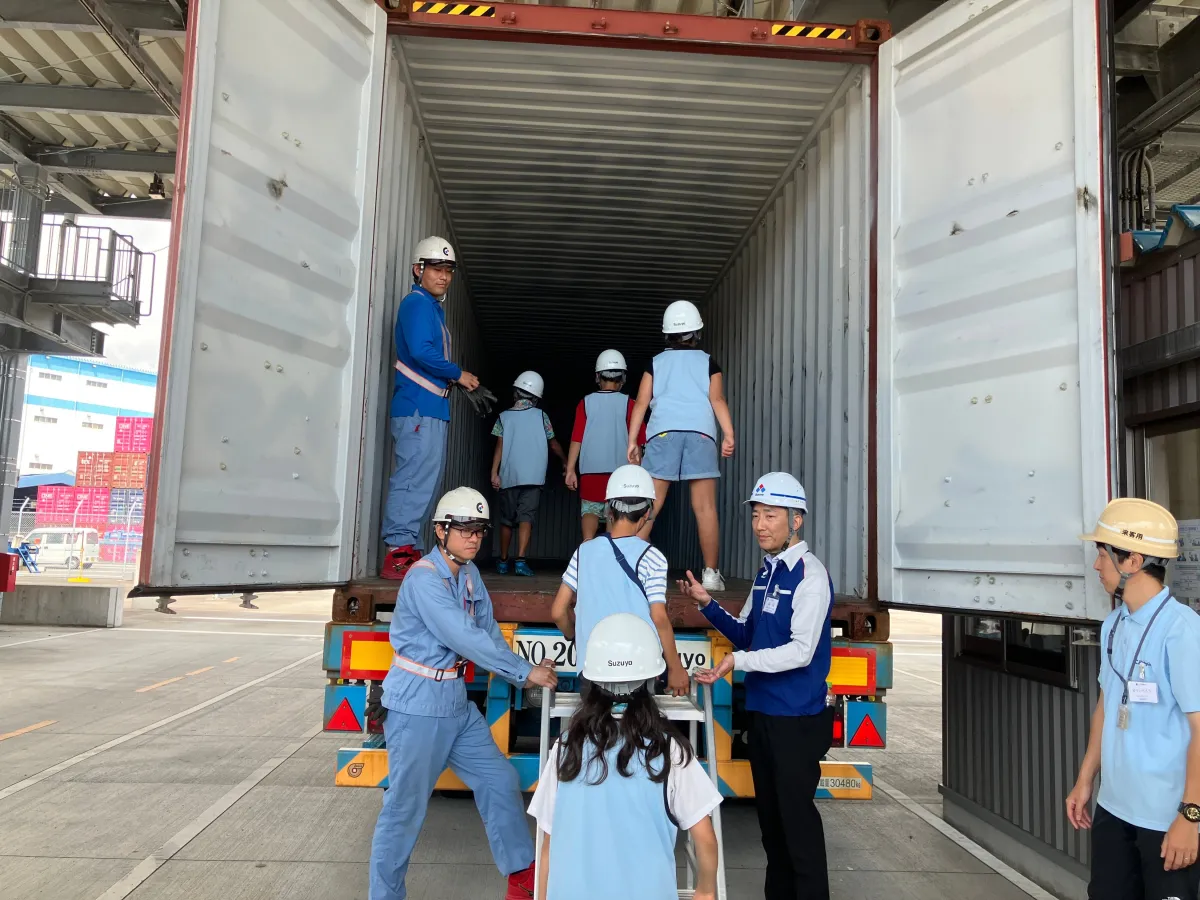 "こどもわーくin清水港"は、清水港に関連する企業や団体が連携し、次世代に豊かで美しい海を引き継ぐことを目的としています。参加者は海を介して人と人がつながることの重要性を学びます。鈴与はその一環として、港湾物流の現場を体験するプログラムを提供。今回は3回目の参加となります。